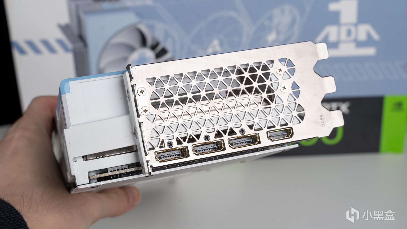 视频输出就是常见的3*DP 1.4a+HDMI 2.1组合输出,三槽厚度妥妥的,导流罩部分和挡板有延申加固设计。
