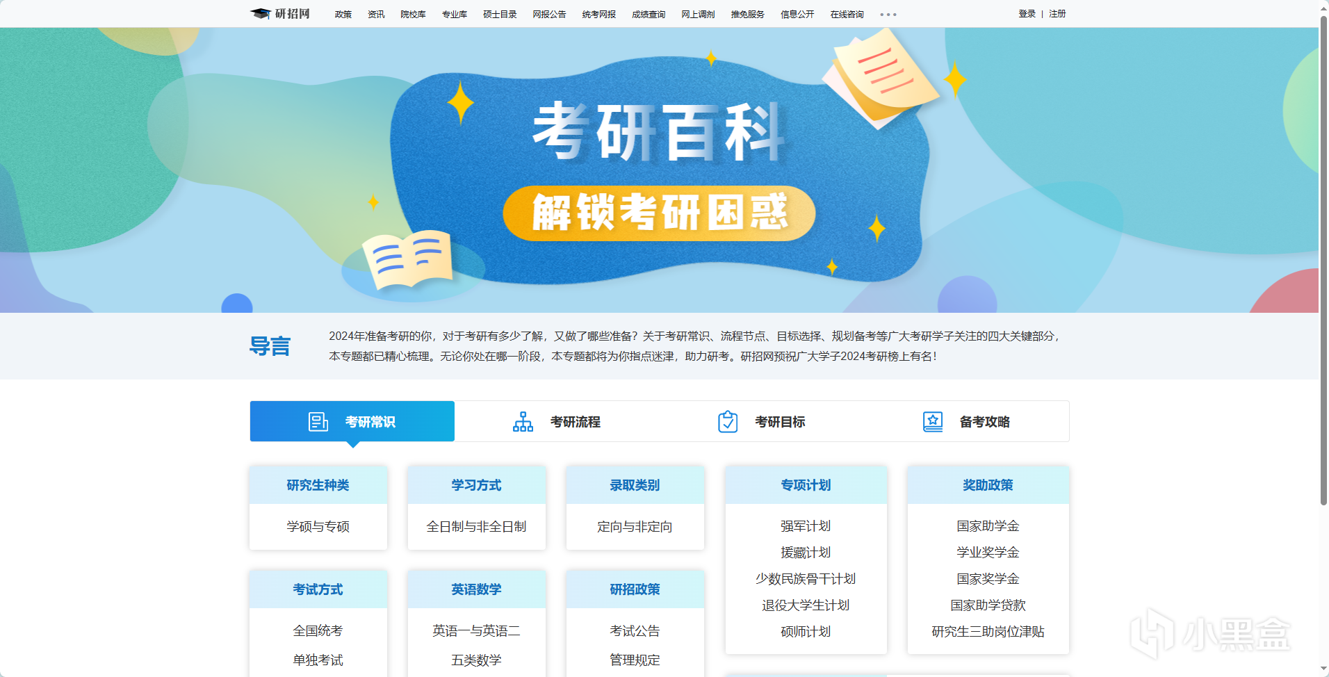 它的考研常識版塊提供的內容包括:研究生種類、學習方式、錄取類別、考試方式、英語數學、研招政策、專項計劃等。