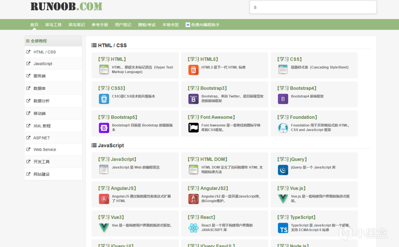 它提供了的學習教程包括:JavaScript 、HTML 、CSS 、服務端、數據庫、web等教程,還提供了 HTML 參考手冊、CSS 參考手冊、JavaScript 參考手冊。
