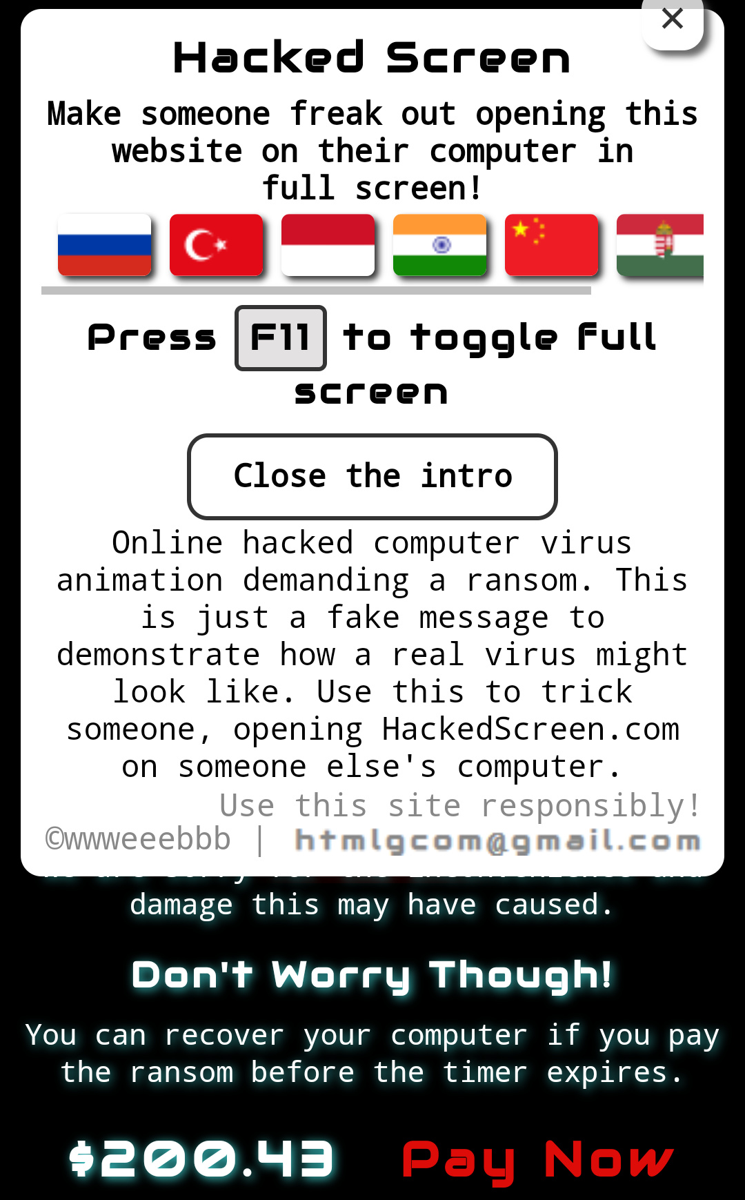 一個用於惡作劇的工具,模擬電腦被黑客入侵後的場景。這個網站通過展示緊張的倒計時和不斷上漲的贖金,來整蠱你的同事或朋友。
