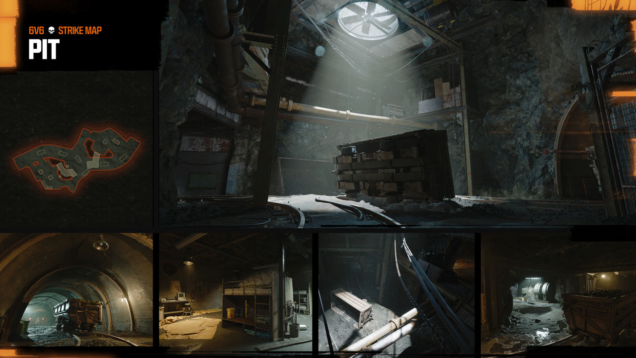 4个的小型正面对决地图,可在6v6或2v2模式中游玩:晚会、矿坑、沙屋、检视