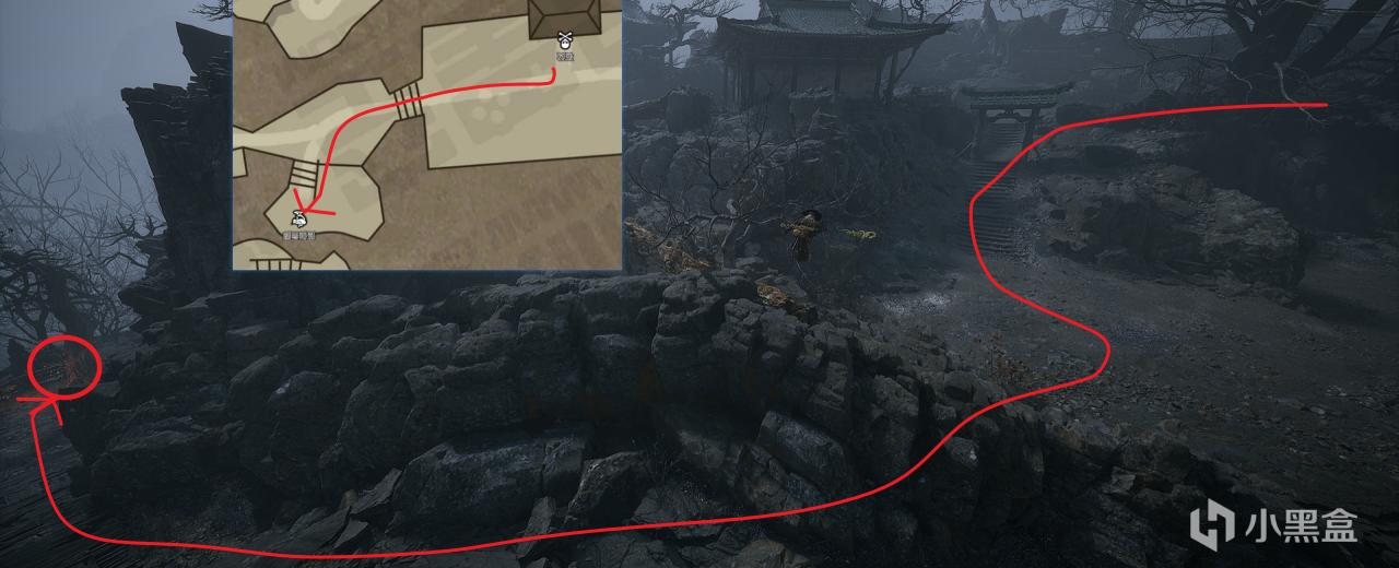 道具落伽香藤,增加酒葫芦的使用次数。从【4、虚空结】石父出发,有点不好找,需要跳下去才能看见。