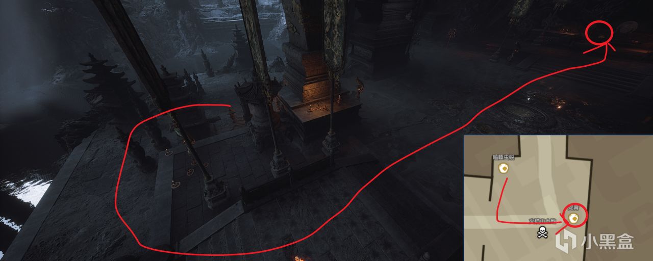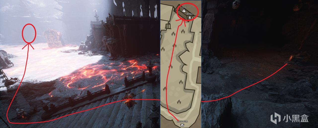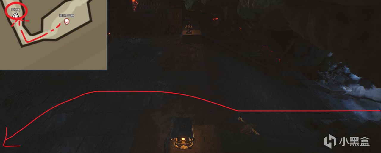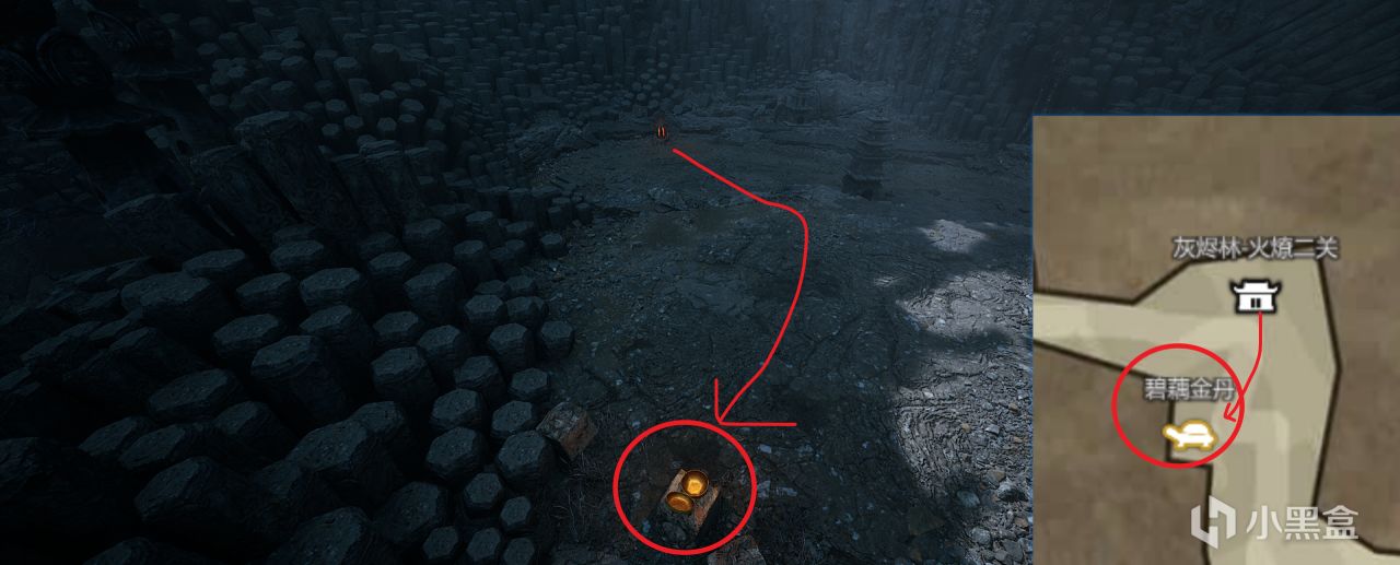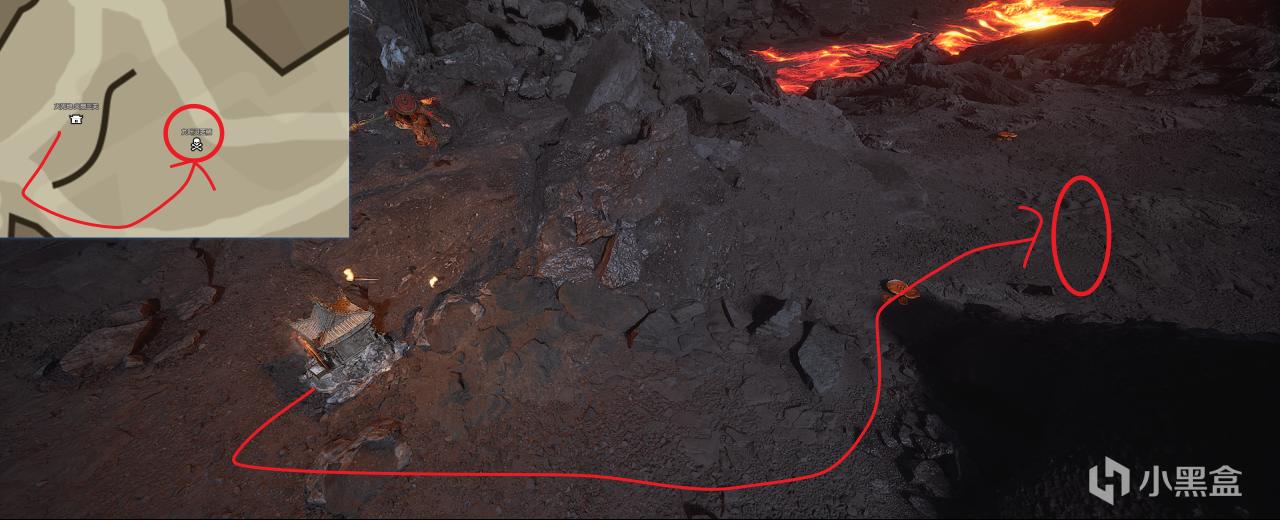 按照下图所示走,进洞后左手,背光面。会遇见遂统领,击败后掉落一个业火晶。