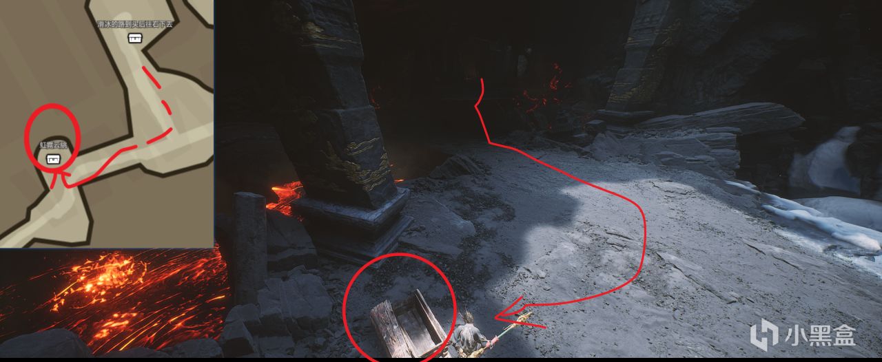 道具三冬虫,在申猴处升级酒品用。在BOSS喷火时,站在冰门旁边,会把冰门开条缝,进去才看得见。