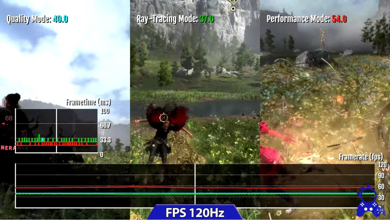 - 遊戲支持120Hz,但是該模式下的最大分辨率限制爲1440p。光線追蹤和質量模式在120hz時只有40fps,而性能模式保持在60fps左右。