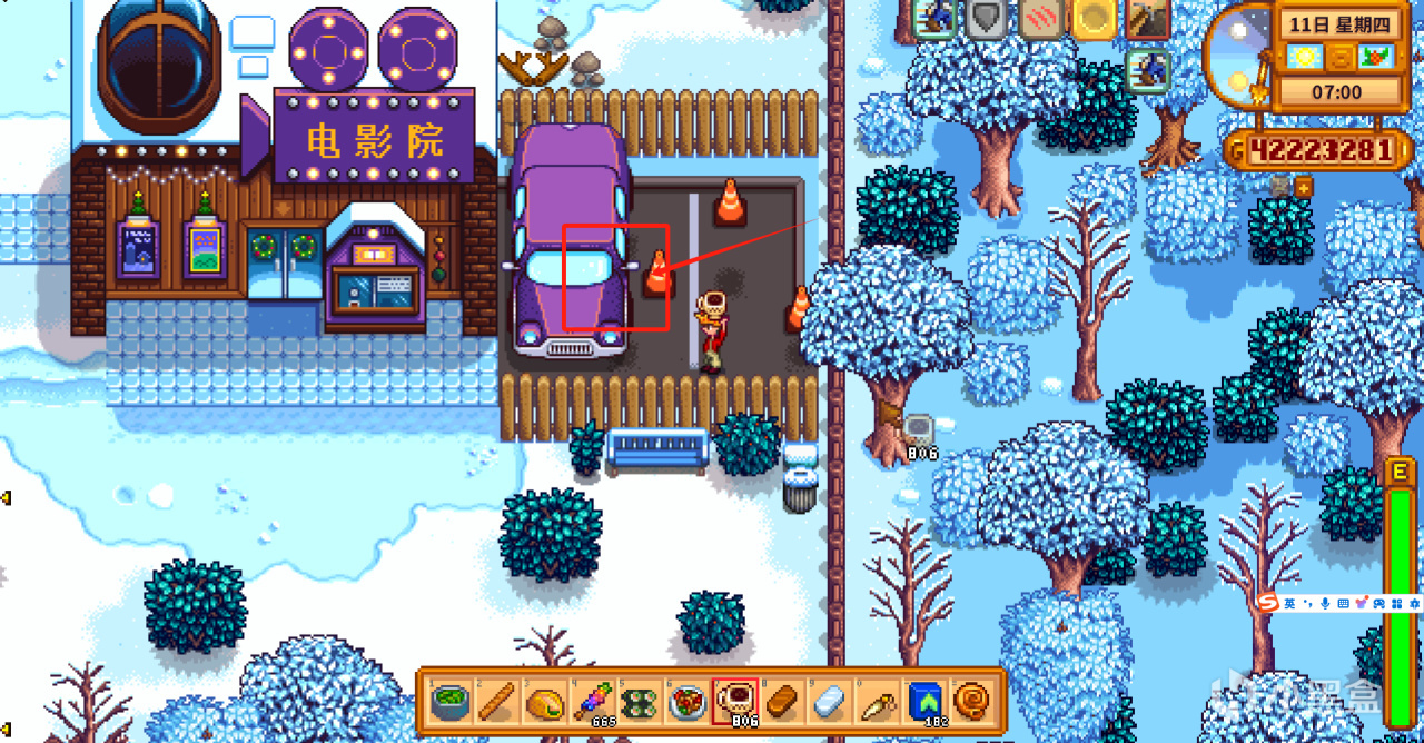(2)图解:来到图下位置(joja超市/电影院)和司机对话获得道具