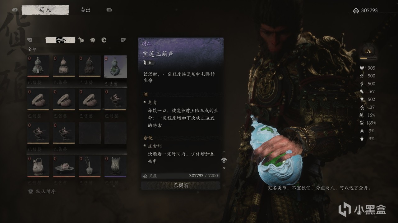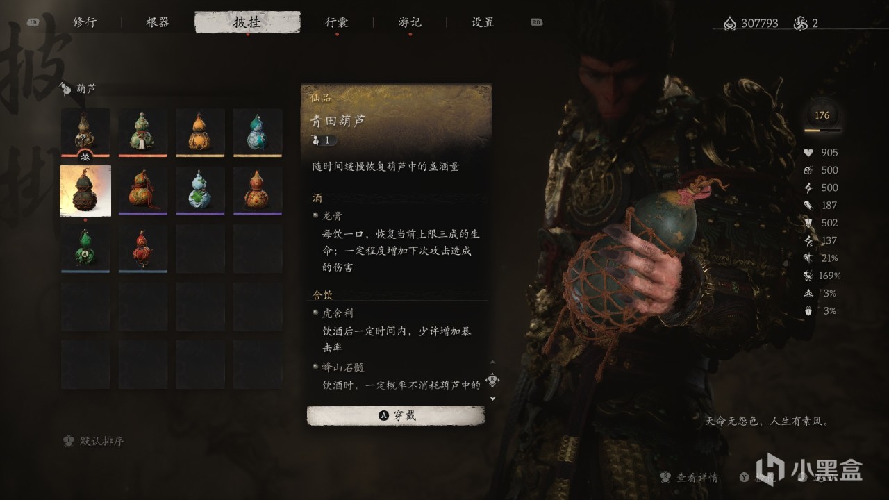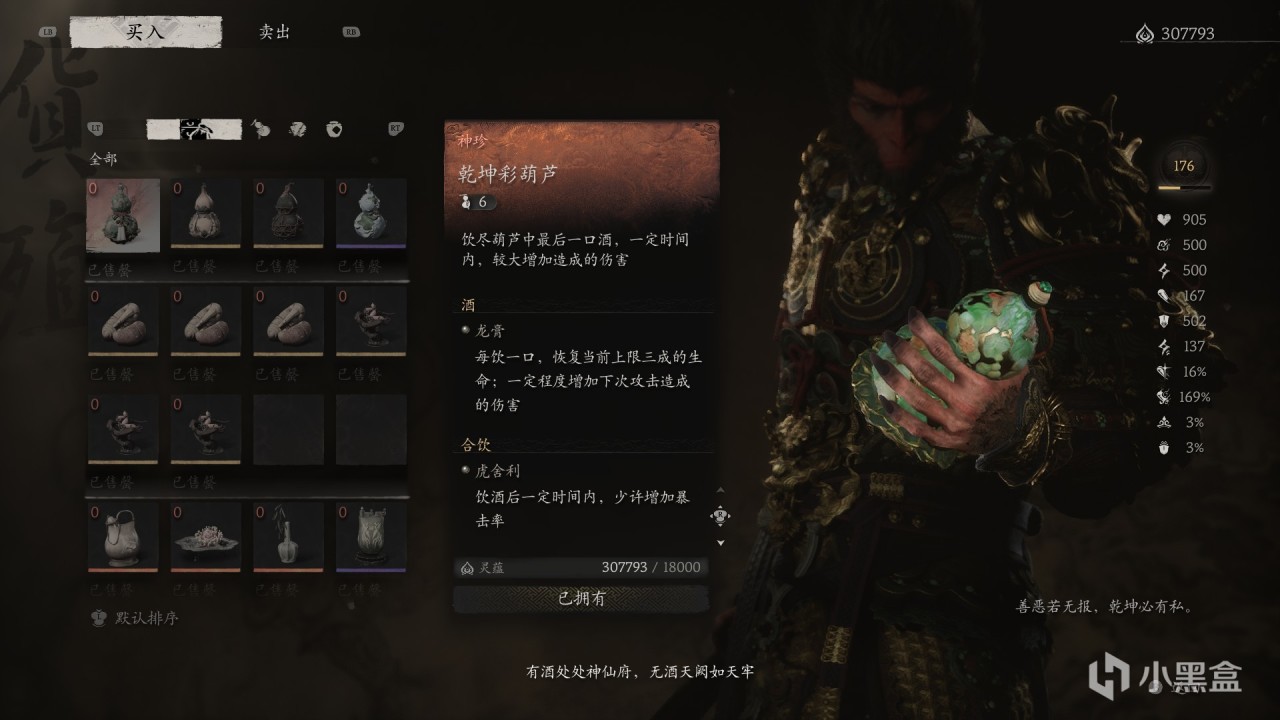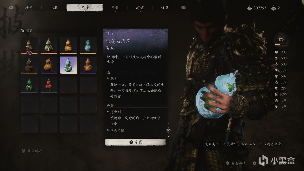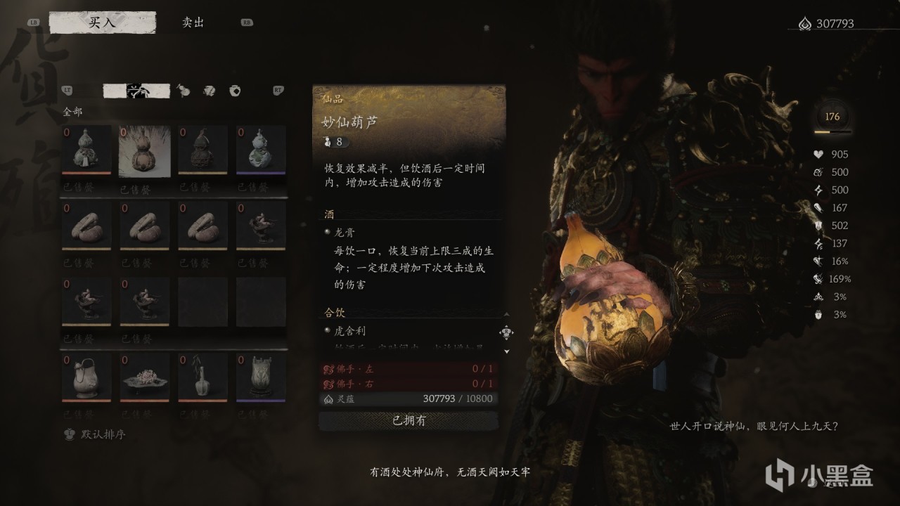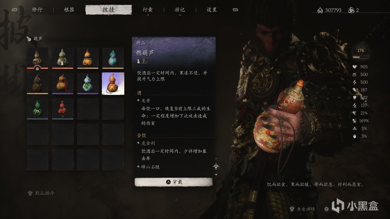 特殊效果:飲盡葫蘆中【最後一口酒】,一定時間內,【較大增加造成的傷害】。