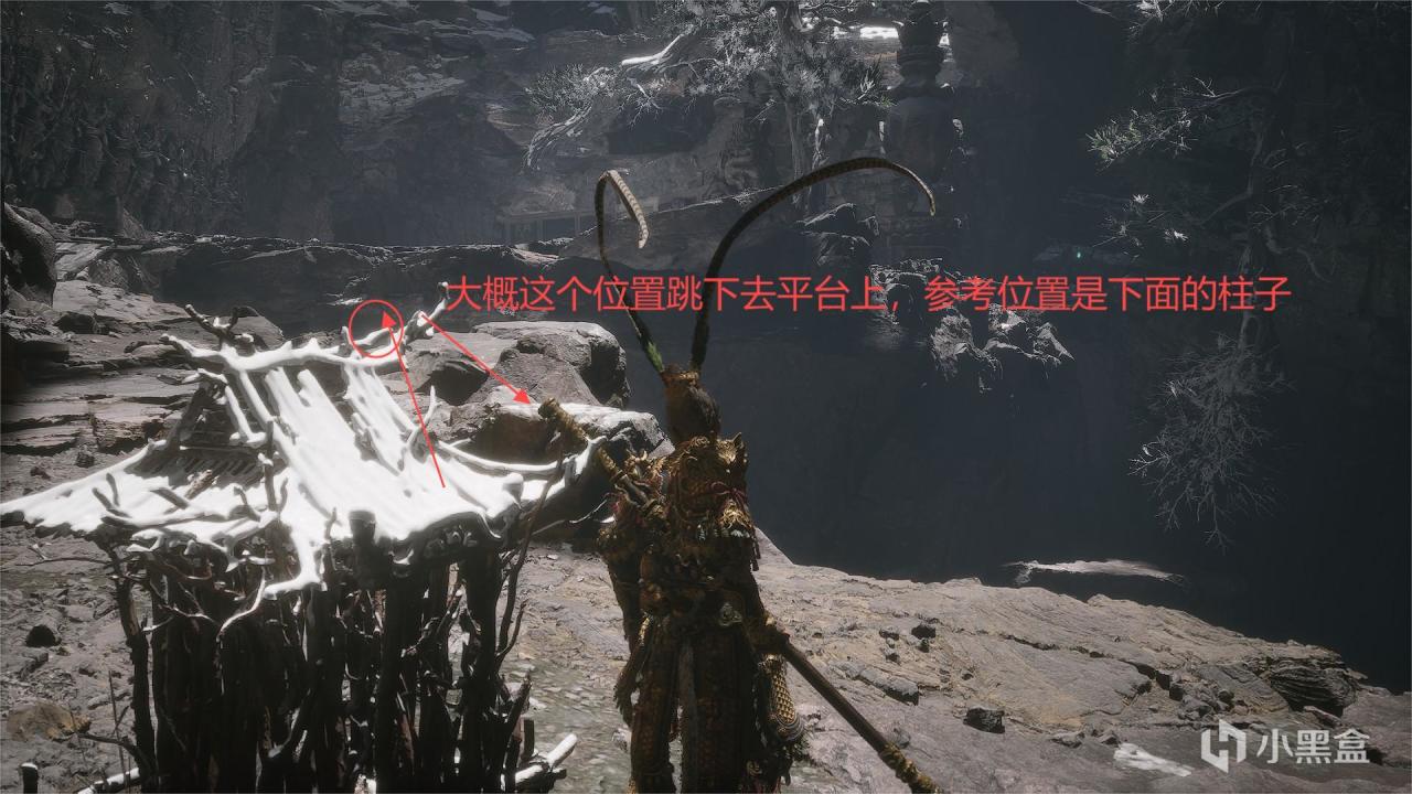 參考柱子看下面平臺跳下