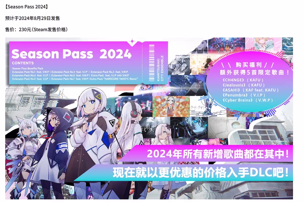 季票內的樂曲會隨時間逐漸開放,也可以單獨購買曲包