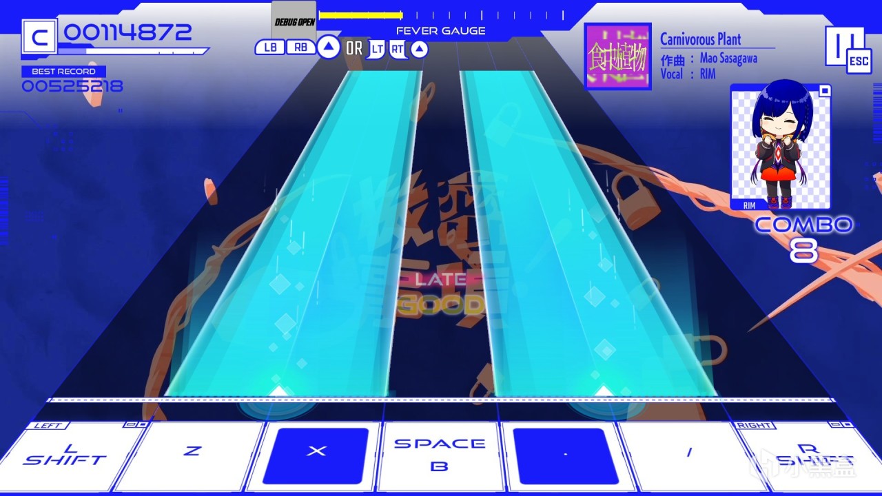 我個人比較推薦用易於按下去的鍵盤軸比較方便,可以增加打擊感,遊戲總體的打擊感是做到非常不錯的,有一個確定就是miss的反饋很差,如果不去注意combo數,很容易不知道自己是否有過miss