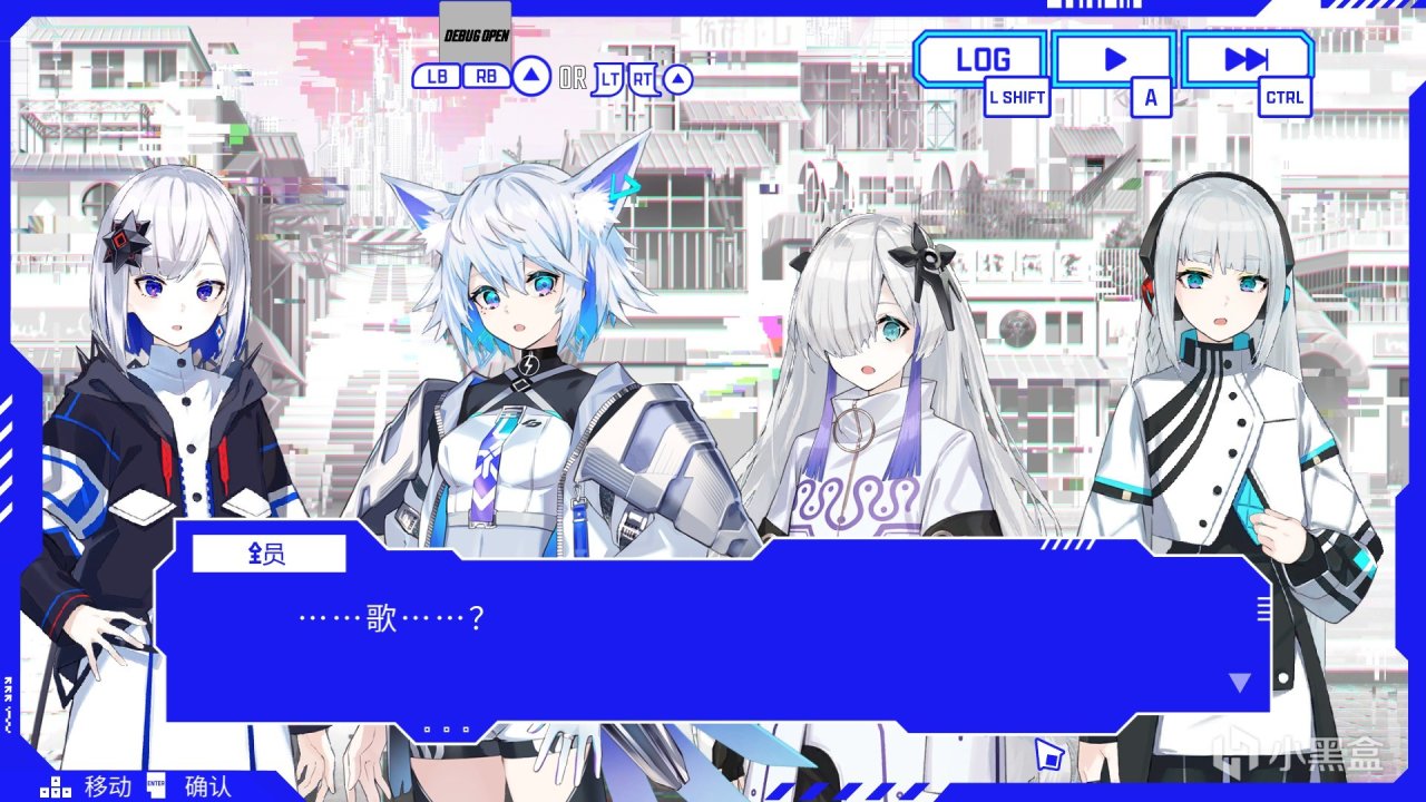 「神椿市協奏中」的UI界面風格是偏向簡約幾何構成的美術風格,其中標準色採用的是高飽和藍,輔助色是白色和其他構成。並且在整體上帶有未來機械風的味道,這也貼合了神椿市復興的世界觀。