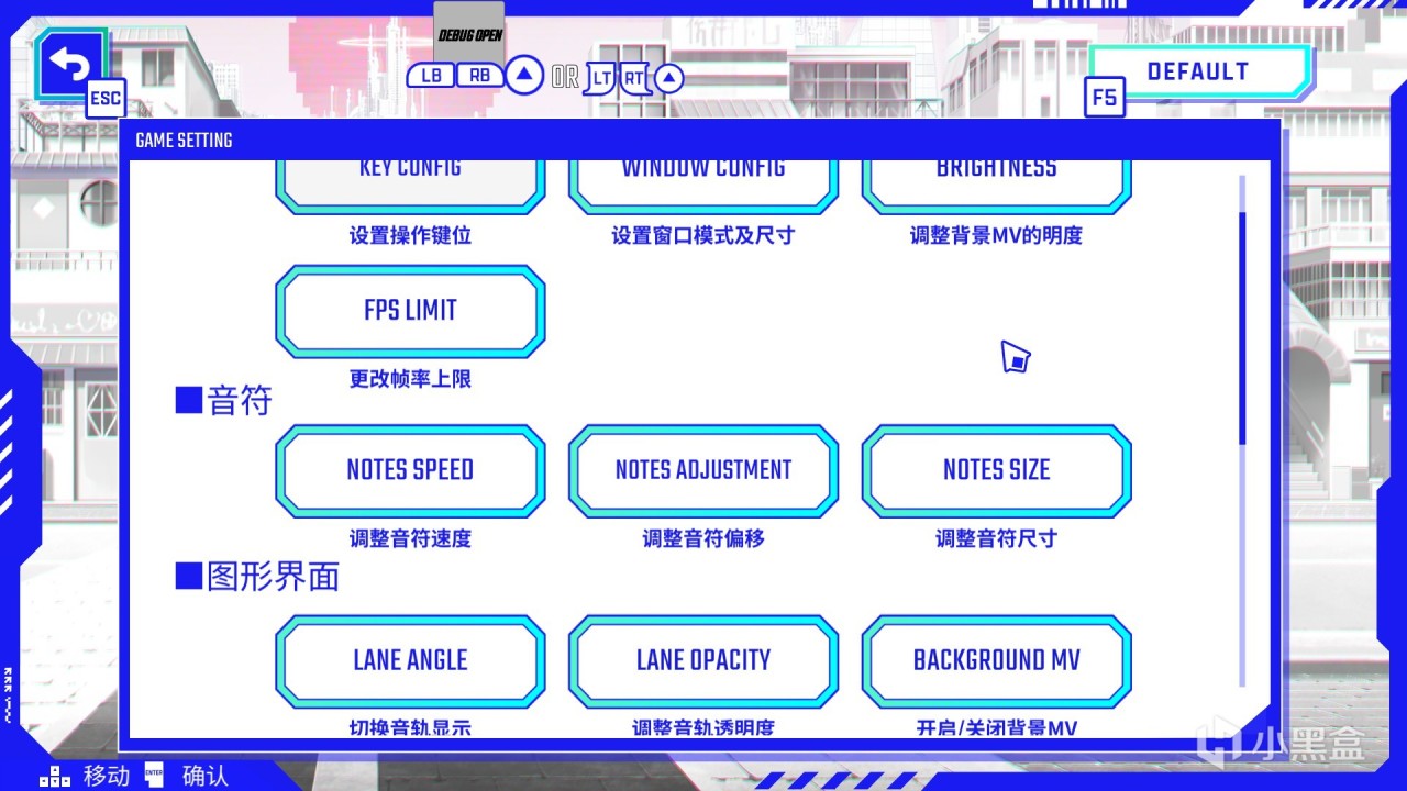 但是「神椿市協奏中」的 DIY 功能是足夠全面的,玩家可以自行調節“下落速度、判斷塊大小、背景明暗、鍵位設置等等”,所以狐狸比較推薦大家降低背景MV的亮度,或者說關閉背景MV較好