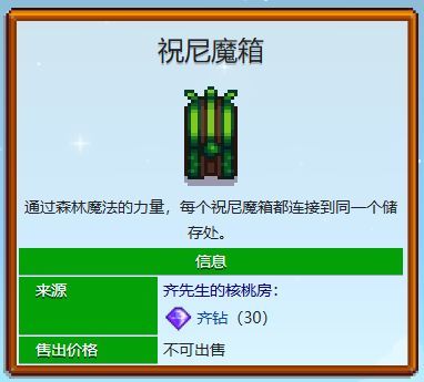 2.功能:尼魔箱共享同一个存储空间(9格)。在一个祝尼魔箱中放置物品后,玩家可以在任意一个祝尼魔箱内取出这些物品