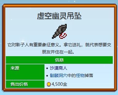 1.来源:从沙漠商人那里以200个虚空精华换取的物品。骷髅洞穴中的怪物也会掉落