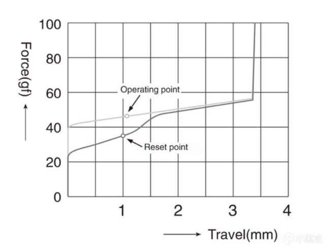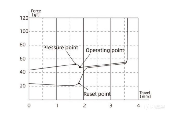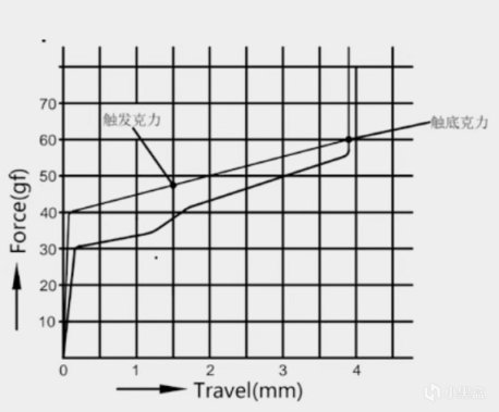 大段落轴体或者叫提前大段落轴体,与前两种轴体不同,大段落轴体的段落感是轴体触发时就有的,类似老款薄膜键盘的胶碗触发,是近些年新流行的独特手感轴体。