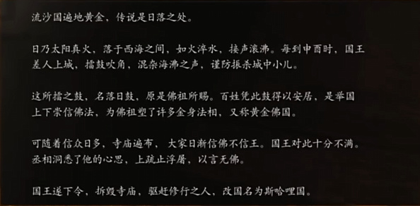 所以百姓们逐渐信佛不信王,国王开启了灭佛运动!拆掉寺庙(你在第二章能看到很多破旧的寺庙),更名为“斯哈哩国”。