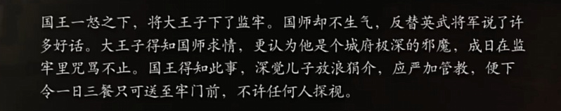 期间,沙国王的“大儿子”不满“黄风大圣”抢自己的功劳,也不满一个妖怪来管理政事,所以在“黄风大圣”诞辰时作乱,沙国王一气之下打入他进入地牢!