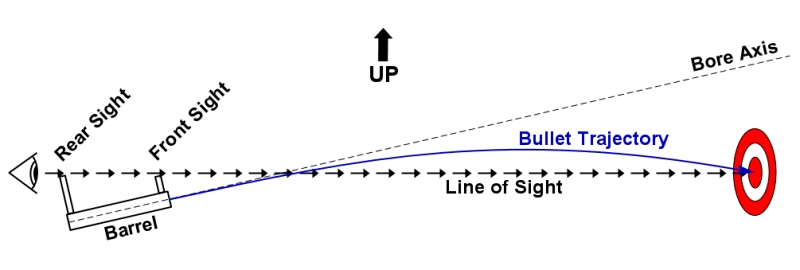 玩家必須考慮武器的機械偏移(槍管軸線與瞄準線之間的距離)以及歸零距離(特定武器瞄具校準爲與子彈彈道重合的距離)。通常情況下,步槍射擊在非常近的距離(20-25 米以下)會因機械偏移而命中率較低,而在零點以外的距離也會因子彈下落而命中率較低。