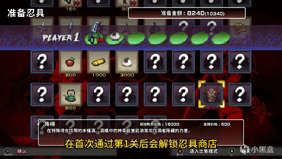 在過關之後還能解鎖忍具商店,可以自行設定需要攜帶的初始道具。