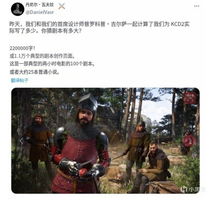 近日《天國:拯救2》的總監兼劇情主創Daniel Vávra在社交媒體上發文透露了關於《天國:拯救2》的創作劇本字數。