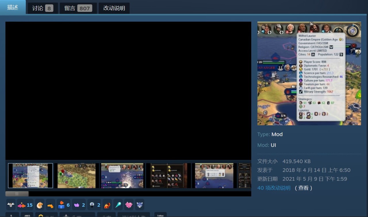 然而,在文明6衆多模組之中,只有少數界面mod在後續標題中增添了(ui)提示。其實,大部分的界面或輔助型mod,在個人理解中,通通可以稱作爲UI。