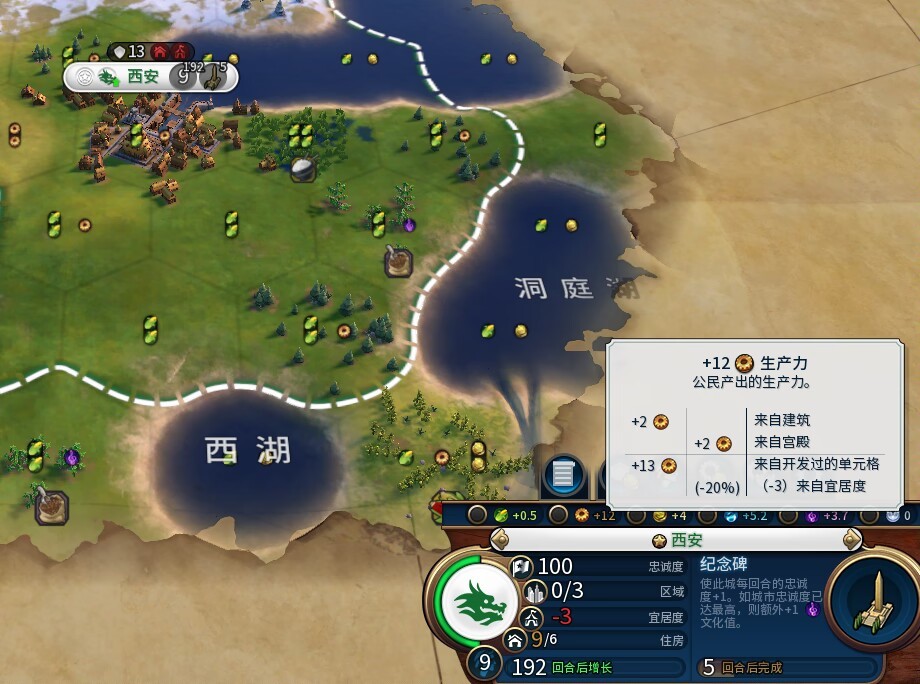 【遊戲主界面】→(左下方小地圖上方從左到右第三個)【倒三角圖標】→【添加地圖釘】→【選擇區域改良奇觀】→自動計算相鄰產出。
