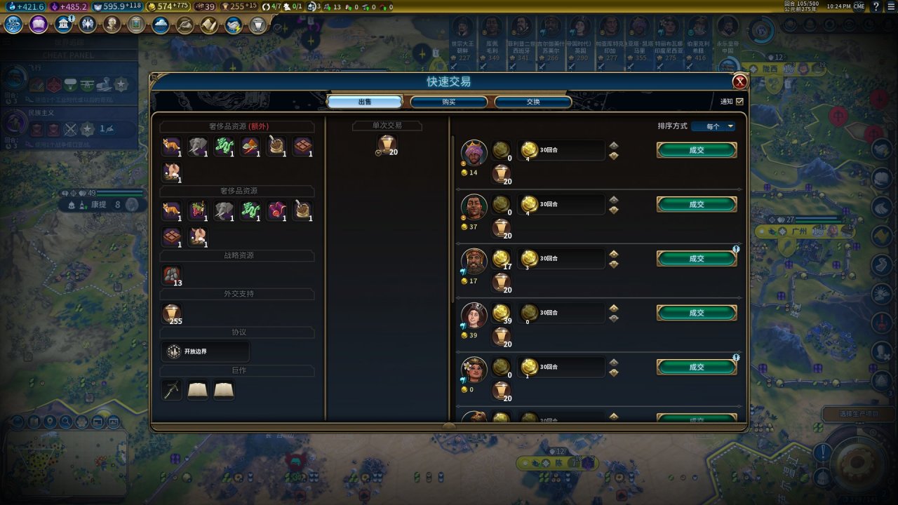 【說明】:該mod不僅顯示所有ai對某種物品的報價,能提供的具體交換資源給玩家做一個清晰地比對,而且還提供以下功能:鼠標右鍵回合金,可直接轉變最高現金;按住Ctrl+鼠標左鍵,可快速添加資源點數。將貿易真正實現了互聯網化。