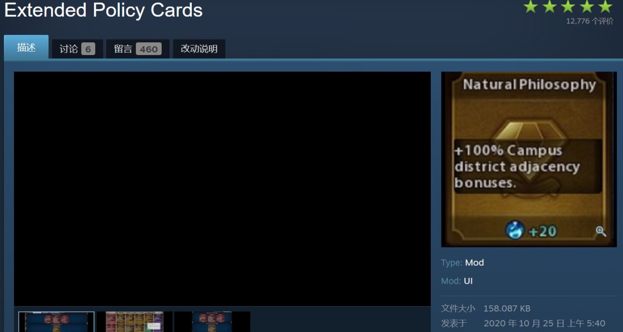【解釋】:該mod作用於遊戲政策。能夠直接在每張政策卡上顯示它產生的具體數值。