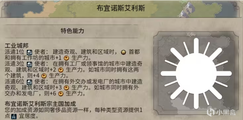 布宜諾斯艾利斯宗主國加成:您的加成資源如同奢侈品資源一樣,每種類型資源提供1點宜居度。