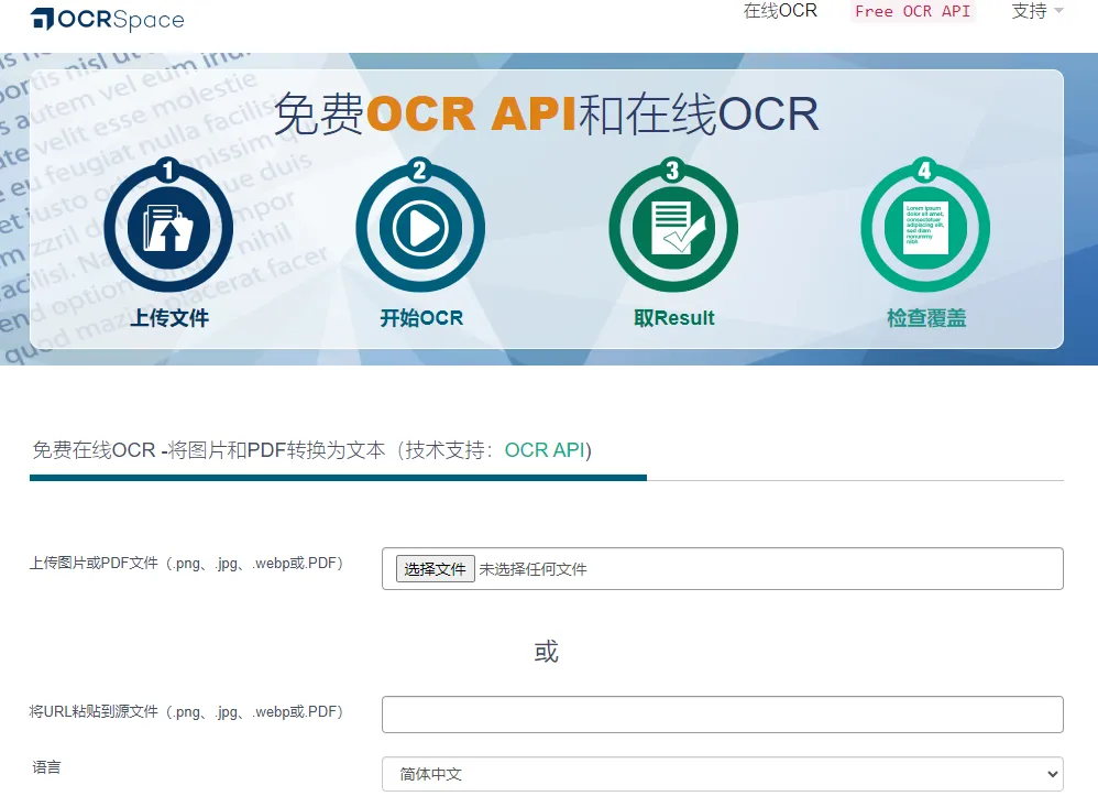 如果你还苦于找不到什么免费的OCR工具,那么这个网站绝对值得一试,上传图片选择语言即可立即识别文字内容。