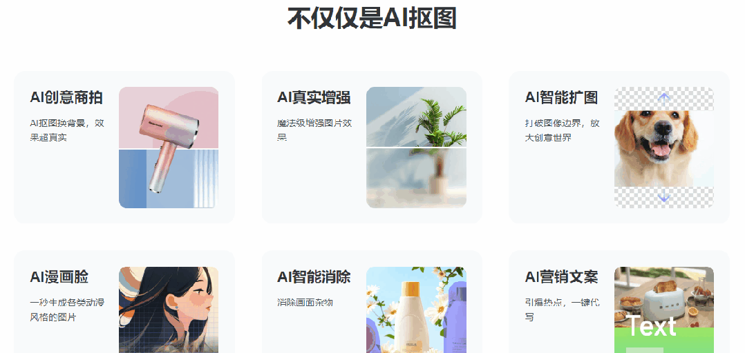 此外美间AI旗下还有:AI智能扩图、AI智能消除、AI文案等等,这些目前都是免费使用的哟
