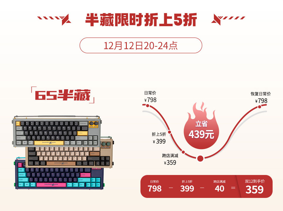 【今晚20-24点】手里键 半藏65 限时4小时 5折优惠才藏81键盘 折上折