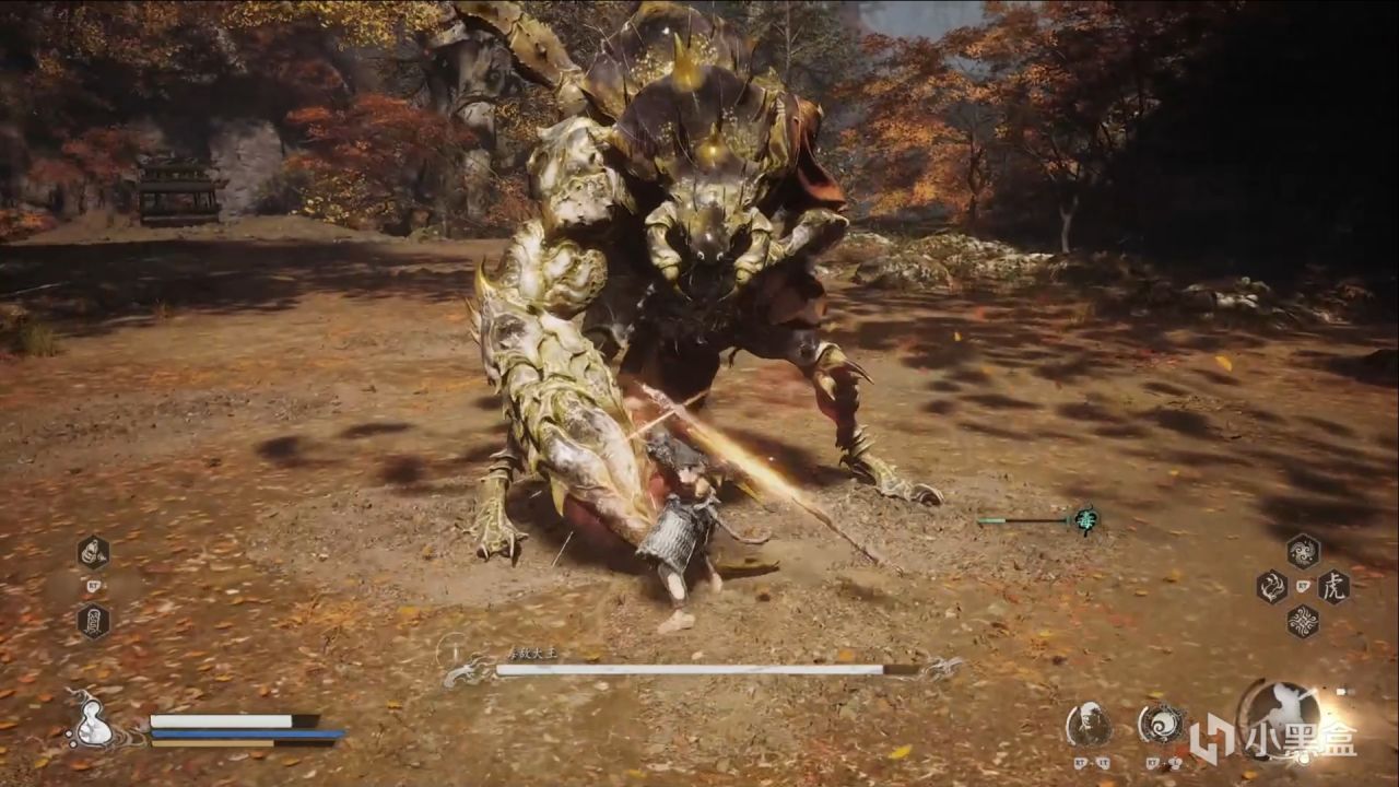 我見他和《只狼》初見赤鬼的感覺差不多,在先拿了刀郎廣智的情況下,初見死了2次就過了——也不排除是因爲我有豪華版,行者套初期還是加了不少防禦力的,跑動開A傷害也高