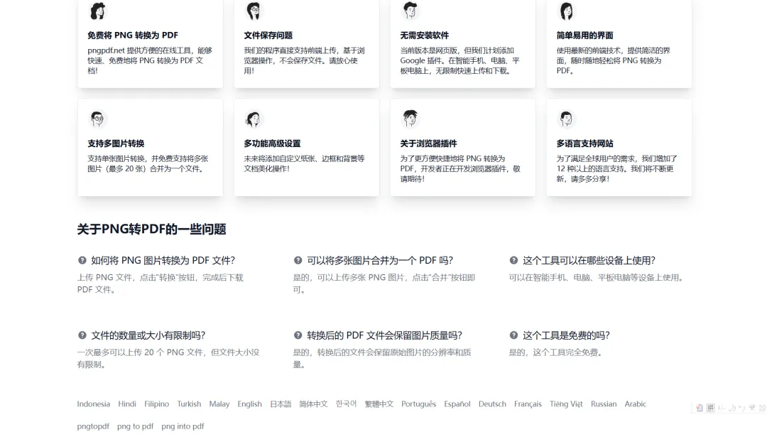 一款转换工具,主要用于PNG图片转换为PDF文件,支持在线转换、多图合并、跨平台使用和多语言支持等功能。