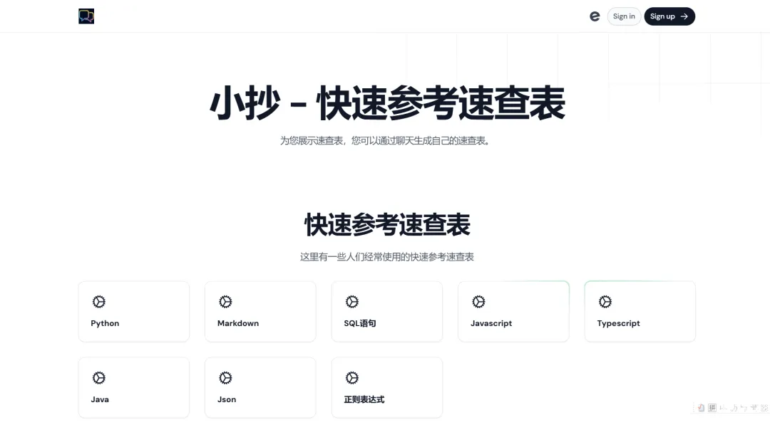 一款可快速参考速查表的工具网站。支持中英文两种语言,该网站包含主题工具如编程、快捷键、运维和部署等分类。