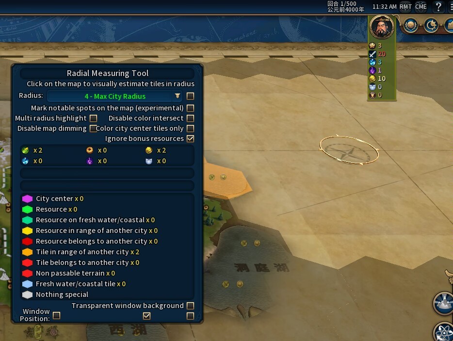 【說明】:這個mod可以用來測量工業區發電、娛樂區提供宜居度、以及小弓廟/羅鬥等奇觀的輻射範圍,給玩家提供一個最合理的規劃方案。同時,也可以測量宗教、忠誠度等影響力,即對宗勝以及愛法/愛英等玩法或領袖具有極大的幫助。