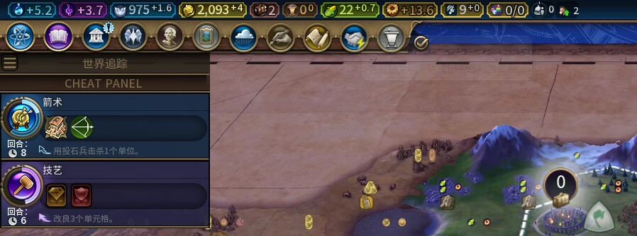 【解釋】:該mod作用於數據產出。原版中,主界面僅僅只顯示玩家帝國的科技值/文化值/金幣/信仰以及外交點數,現在,左上角的帝國面板顯示的內容變得非常豐富。