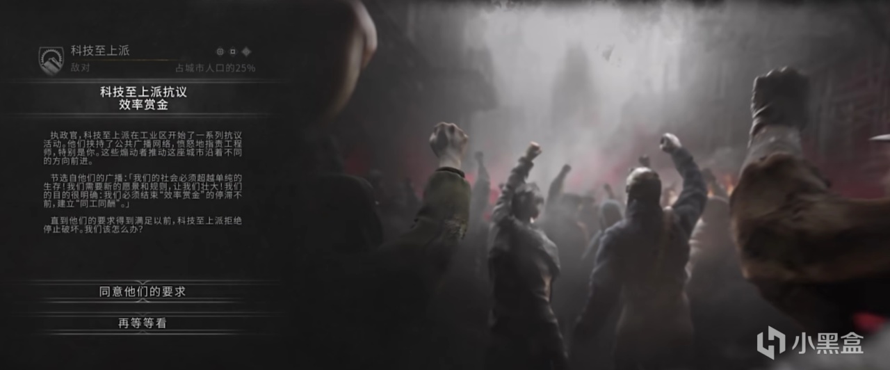 随着派系的发展壮大,他们的诉求和声浪也会越来越大,或许是更多的议会席位、更多的狩猎活动或者是建造更多的资源建筑。而肯定和拒绝他们的诉求都可能对人民的认知和城市的发展产生极大的影响。