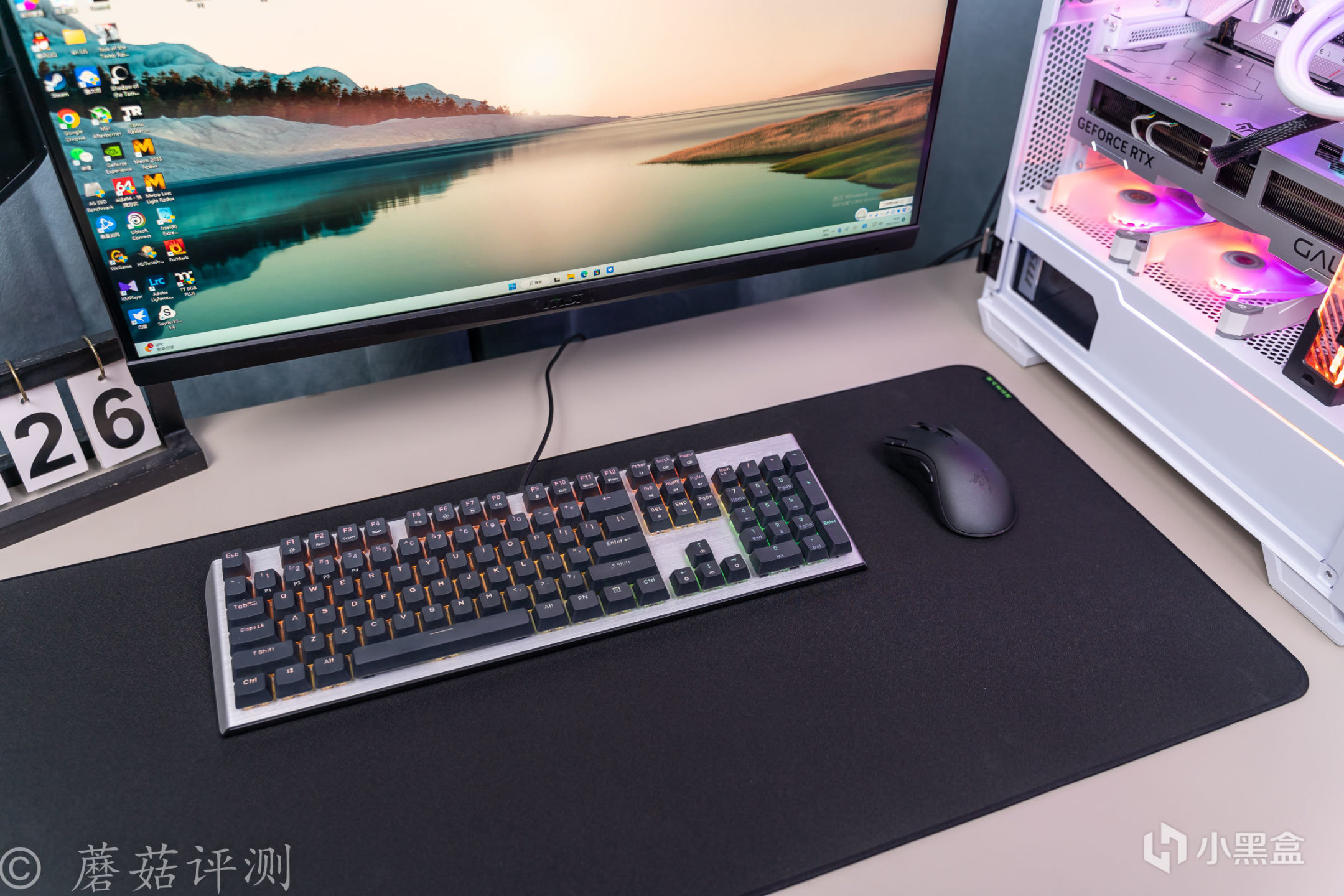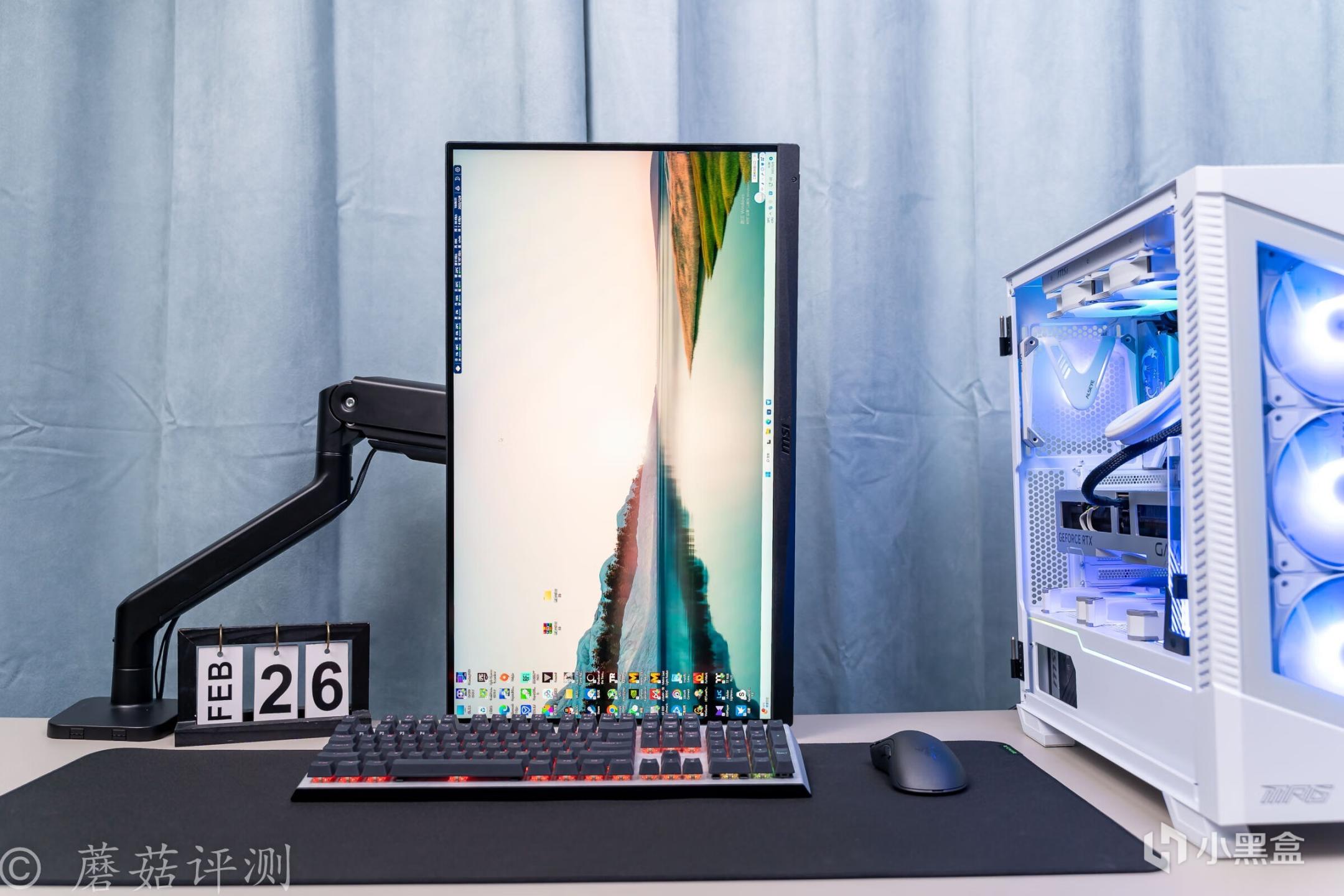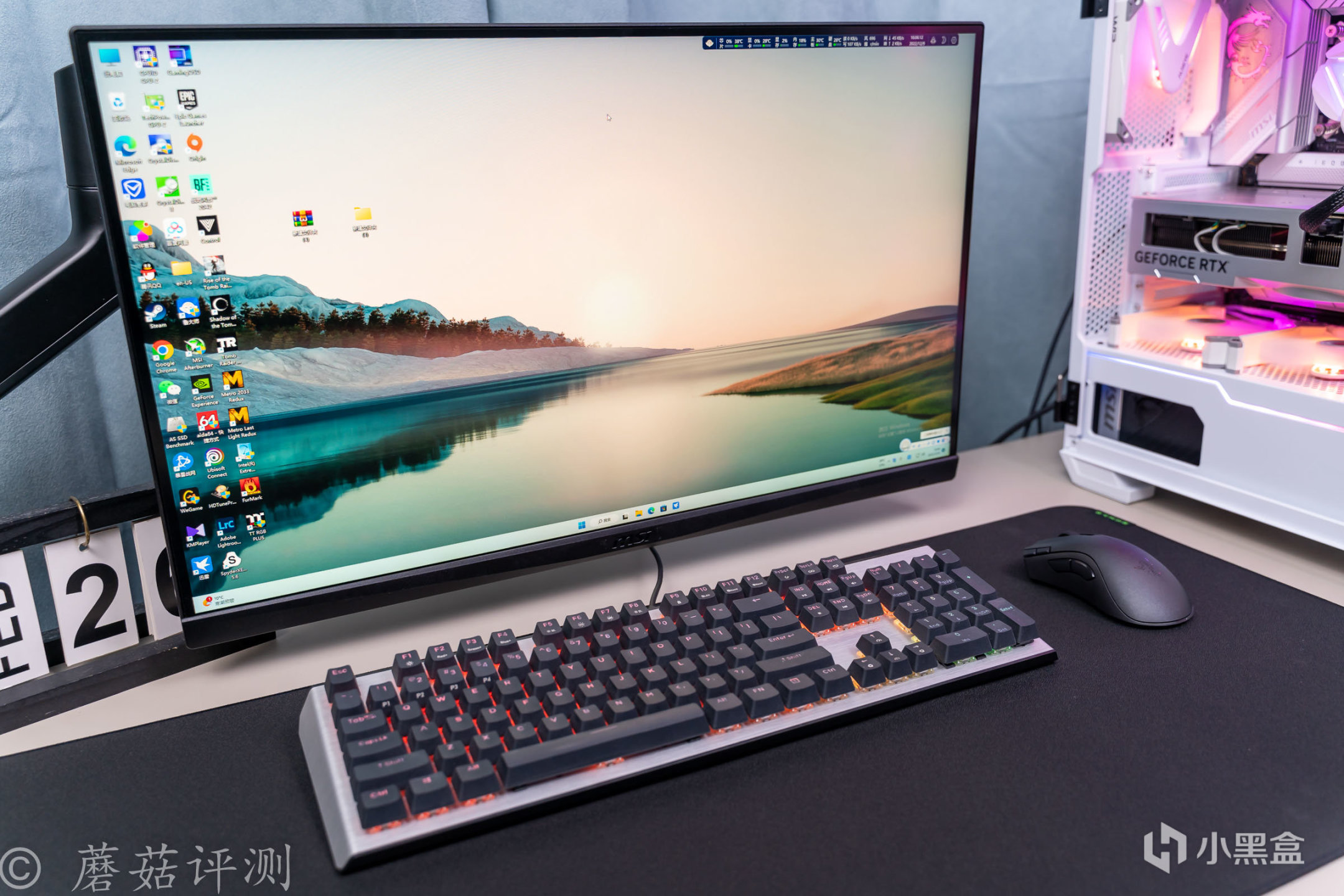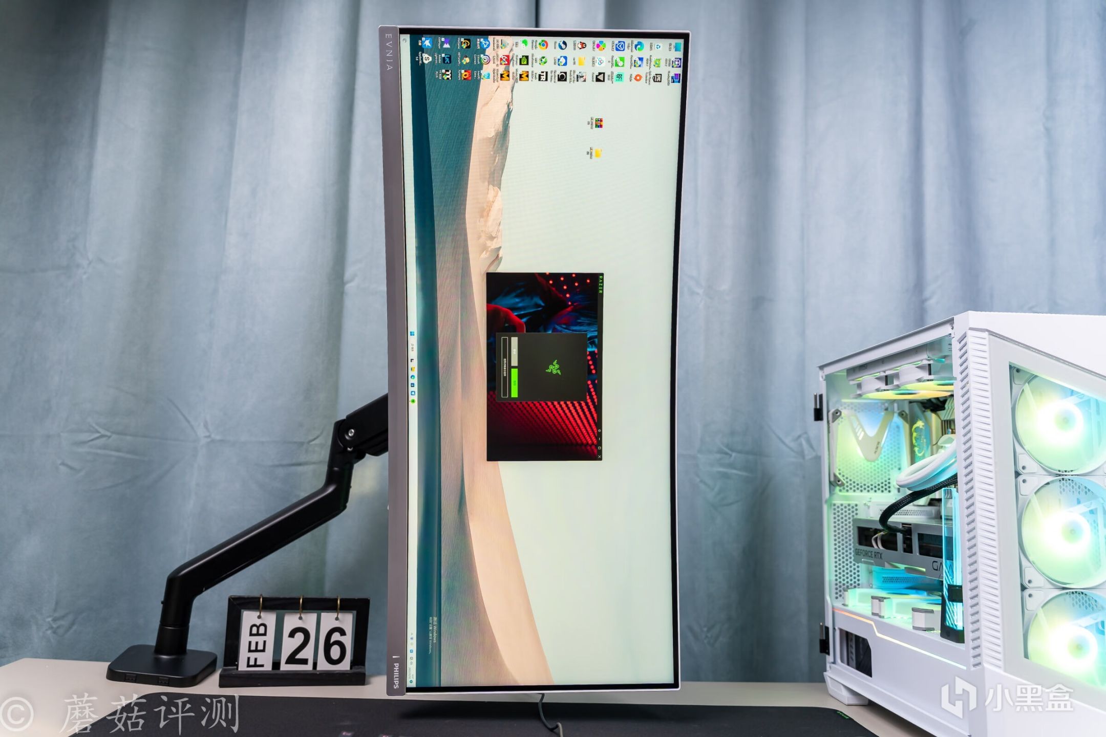 ▼平时日常使用的时候,蘑菇比较喜欢显示器摆放的稍微低一点,配合显示器支架,可以轻松让显示器几乎下边平齐桌面。
