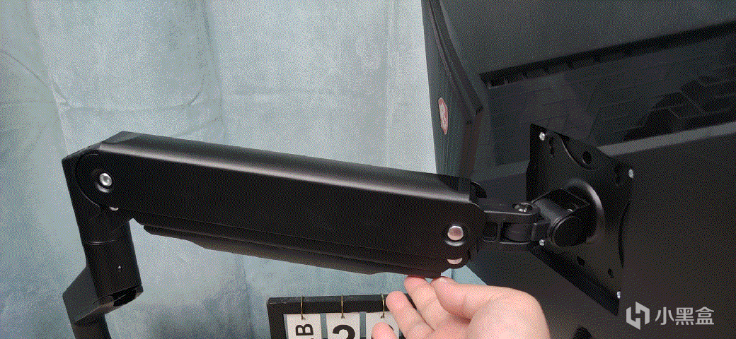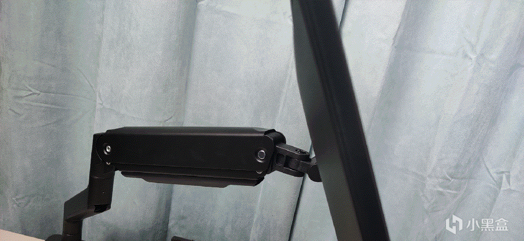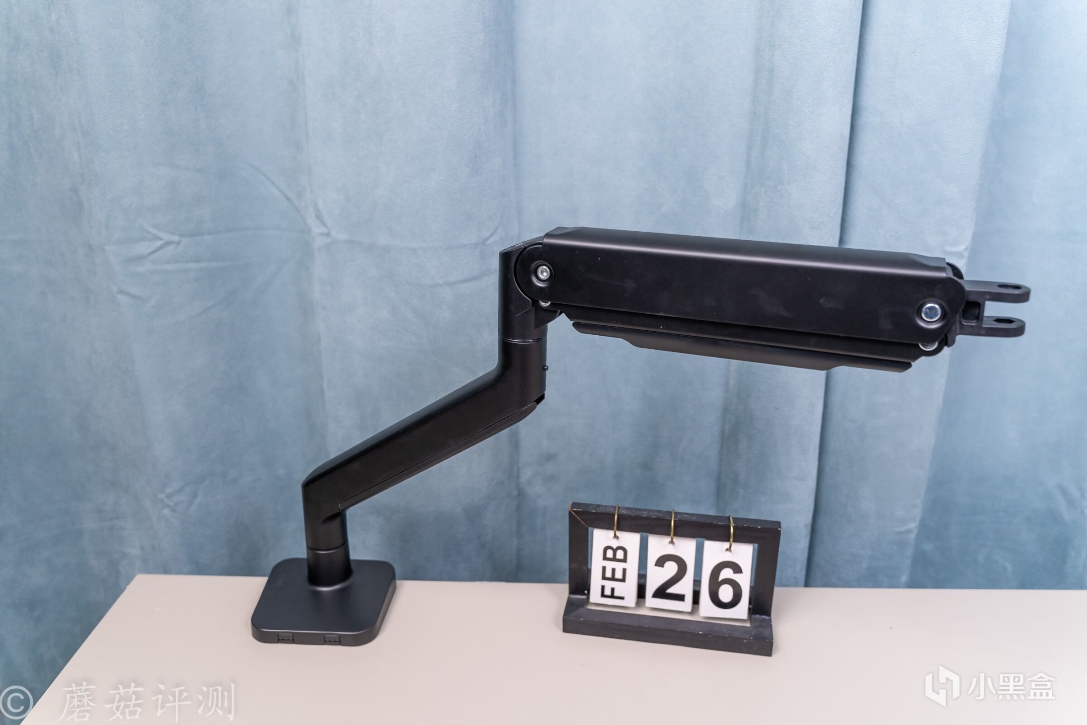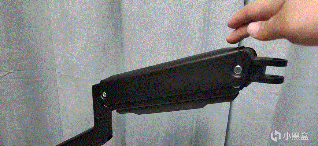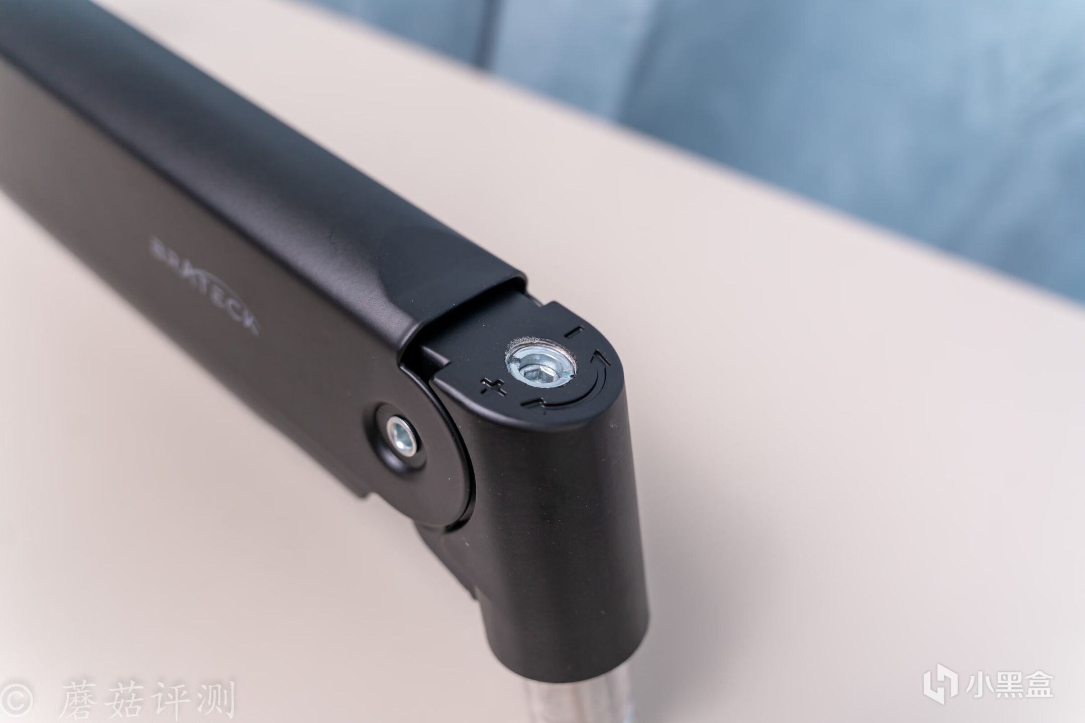 支臂的支撑部分,设计也非常不错,外观很厚实,调节力矩的方式也非常简单,拧动尾部的螺丝就行。调整好适合的力矩之后,支臂的支撑非常的丝滑,上下移动显示器非常的轻松、稳定。