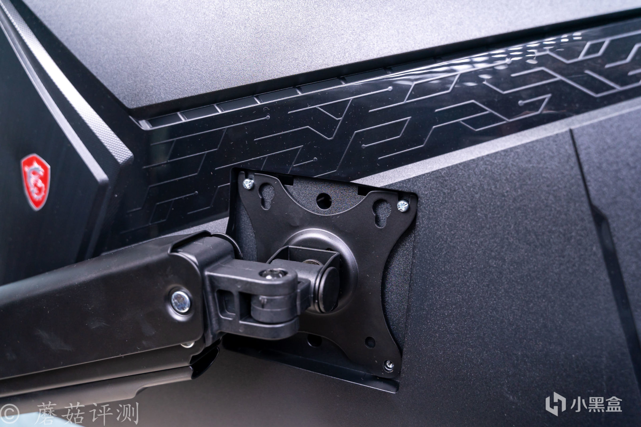 ▼微星小金刚MAX的支持标准的100 x 100mm的VESA,这里直接在上部两个螺丝孔拧两颗螺丝,接着将显示器主体挂到显示器支架上。