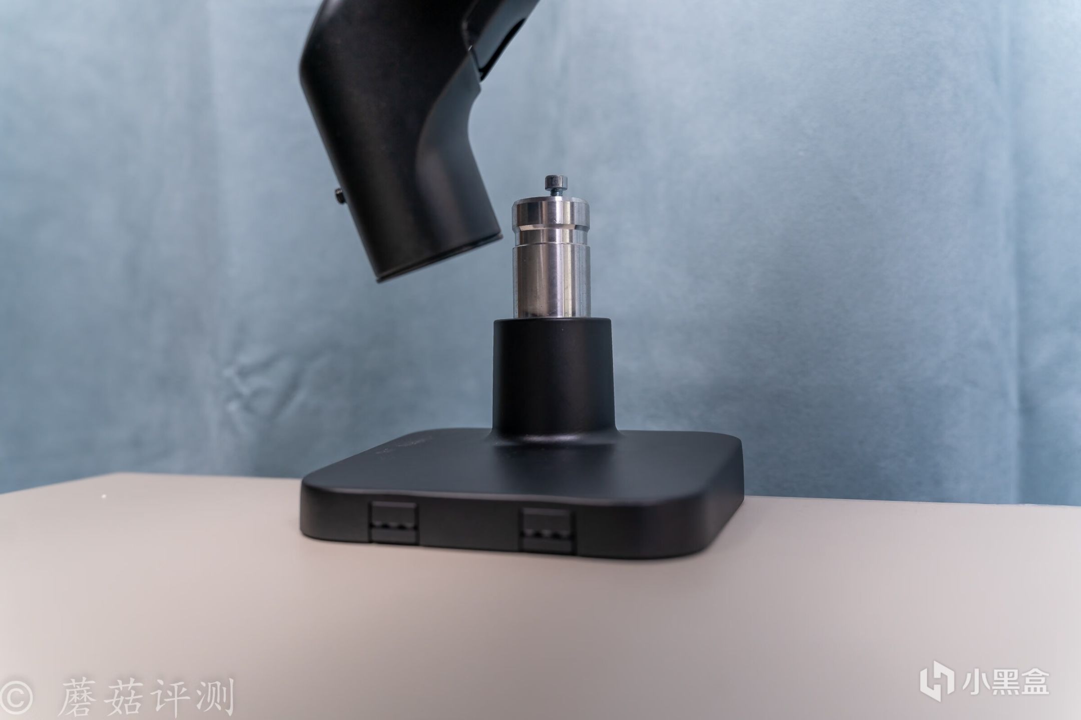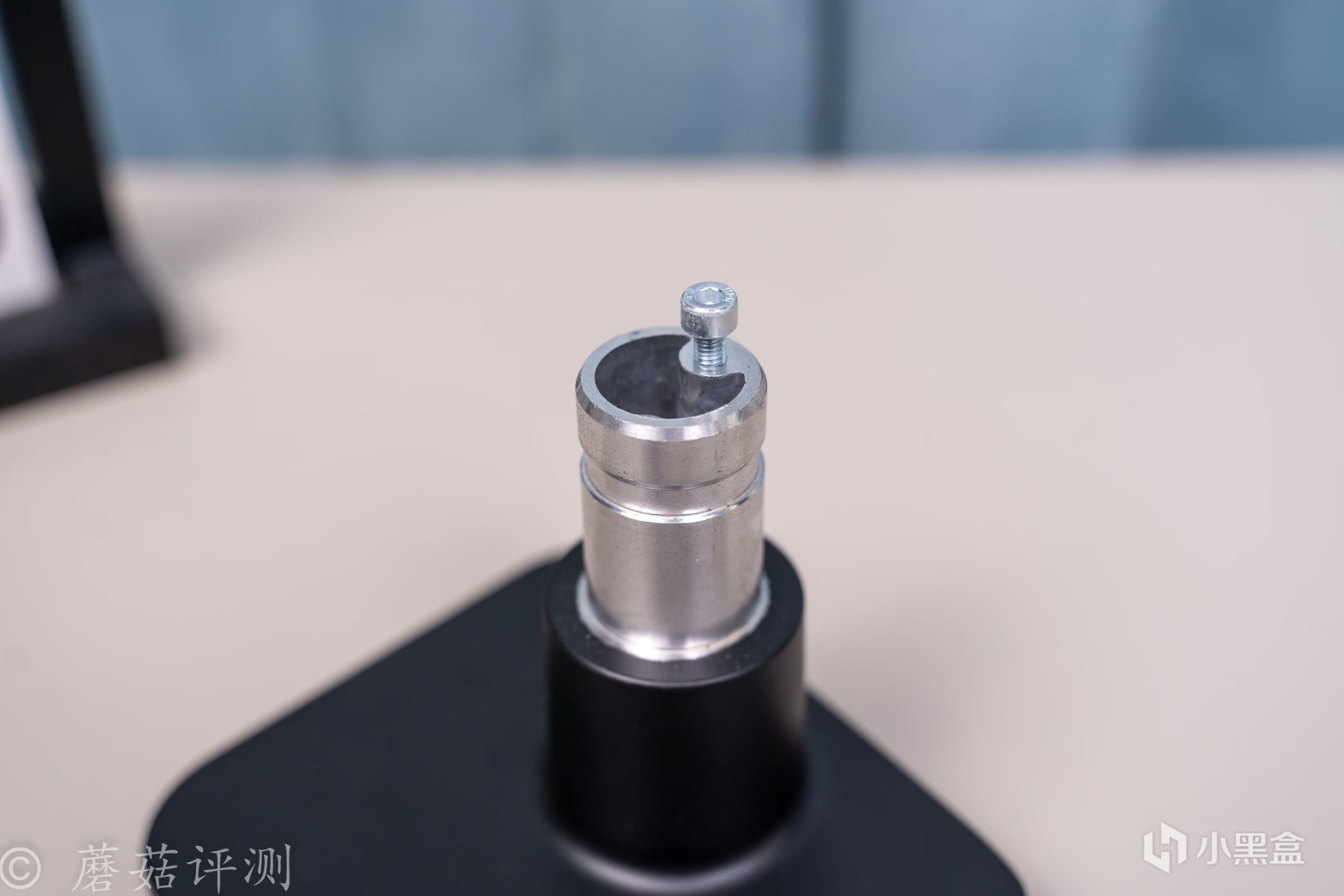 ▼显示器支架底座的上部用于连接支臂,金属材质的厚度很给力,另外上部有一个可拆卸的螺丝限位,用于控制支臂的旋转角度,如果不需要的话也可以取下,非常方便。