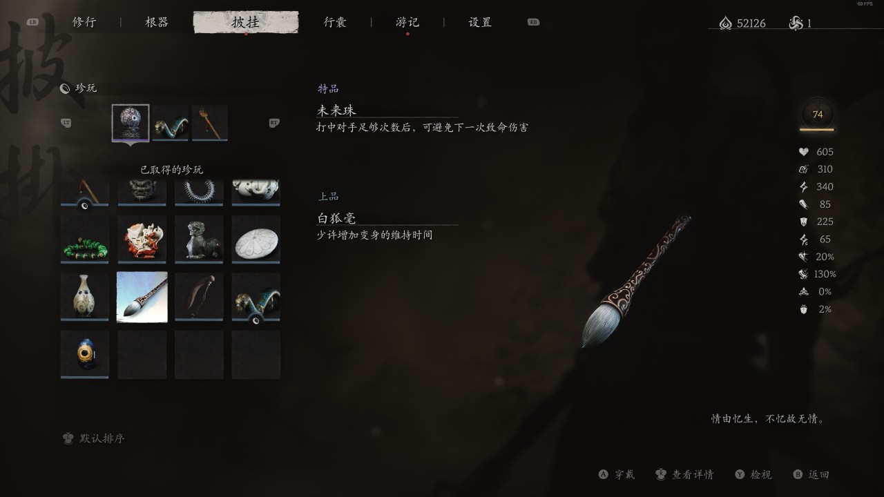 可獲得物品:精魄·不白、不淨、不能、不空 珍玩·白狐毫