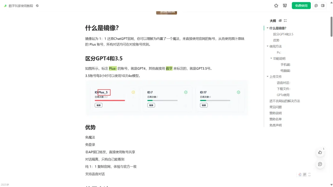 另外每個賬號後面也有相關的標識,如Team、Plus、mini代表了Gpt4、Gpt3.5等不同賬號類型,點開幫助中心該網站也提供了詳細的使用操作說明,玩轉更加簡單明瞭。