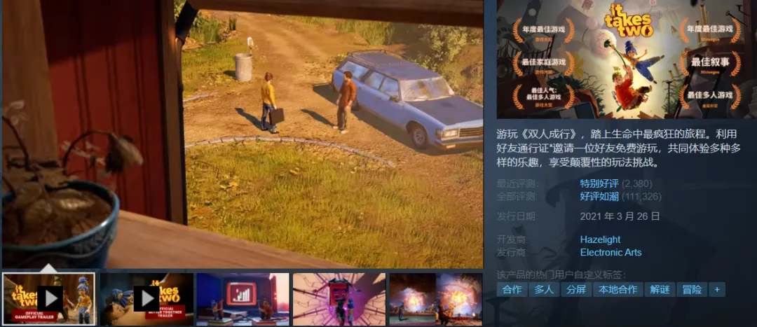 【短評】:一款推薦情侶或者朋友一起玩的雙人遊戲,確實很優秀,腦洞包括場景美術音樂都沒得說