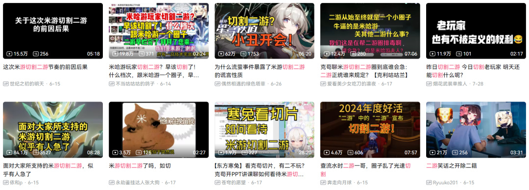 原本在不發生極端事件的情況下,新老用戶始終處於一個文化圈層,並且都會流向針對不同羣體的二遊產品。有些事情開了頭就不會結束,在玩家主動切割、官方推動自有陣地建成、大衆因罵戰越發警惕的環境下,用戶也會主動、被動地站隊。