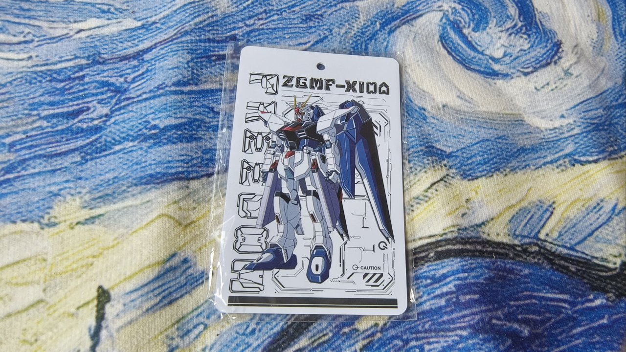 等等,小牌牌。我才意識到那個卡片上面也有孔,不會吧,雖然說是高達駕駛員,可是一邊戴着牌牌一邊拿手柄打遊戲的場景想想都覺得中二,我還是不組裝了。卡面上是自由高達,特別帥氣,不過沒什麼卵用。它也不可能真的幫我作戰