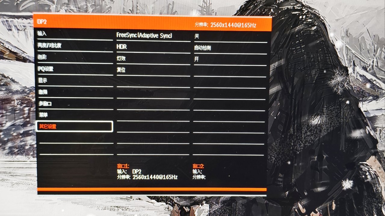 在查看OSD界面的過程中,我發現了一個很不錯的功能,那就是FREESYNC,他的作用就是用顯示器的刷新率跟隨顯卡的輸出幀率保持一致,保存同步。從而防止畫面顯示多幀內容,出現畫面錯位導致撕裂