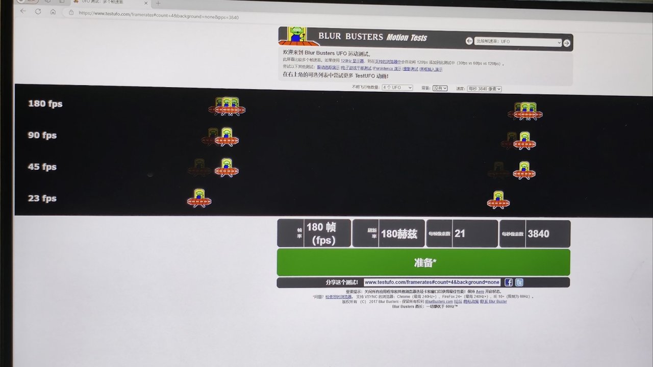 可能還是會有人覺得60HZ,144HZ怎麼了也能照樣玩,差別應該不大。因此我打開了UFO給大家作爲一個測試,很明顯不管是在肉眼情況下還是相機拍攝,你都能感受到180FPS更爲順暢,速度更快一些,這對於我們實戰是真的有所幫助的
