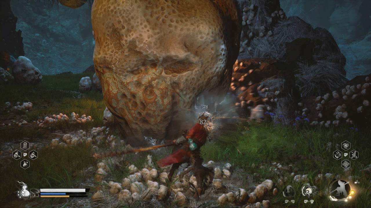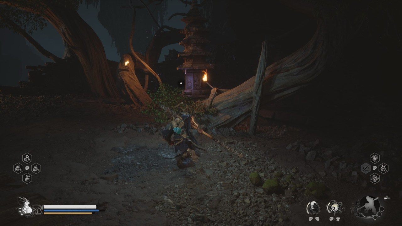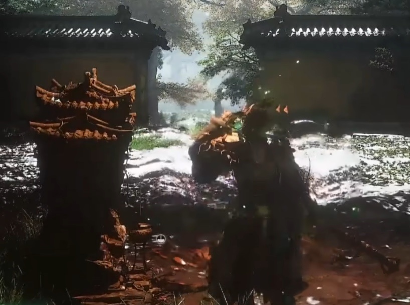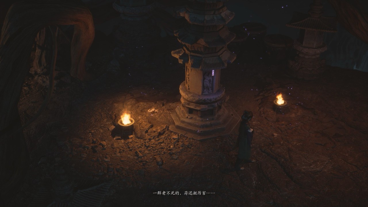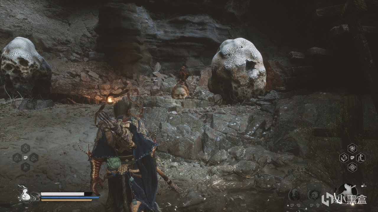 面向這邊是進入大院第一次打【豬八戒】,背向的洞穴出去是打【豬八戒】的一條命雙形態的戰鬥場景。